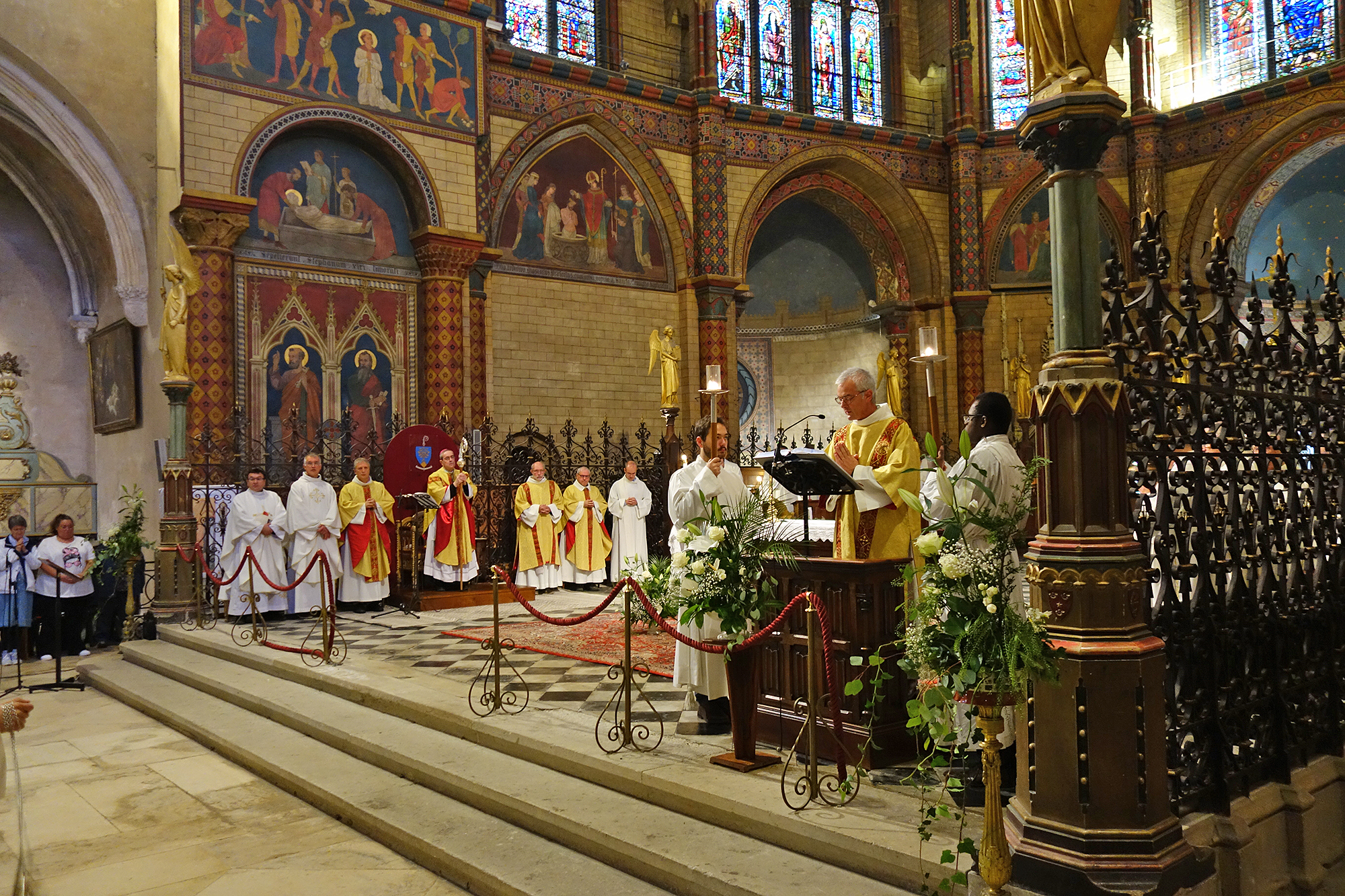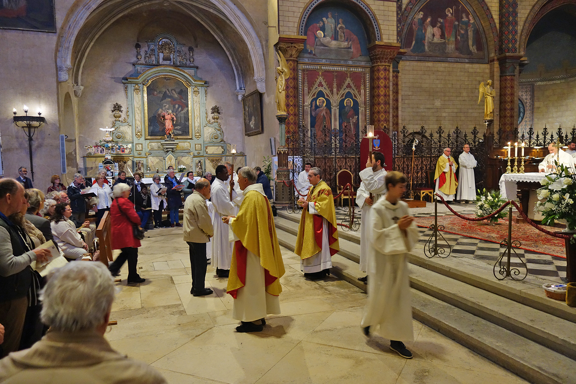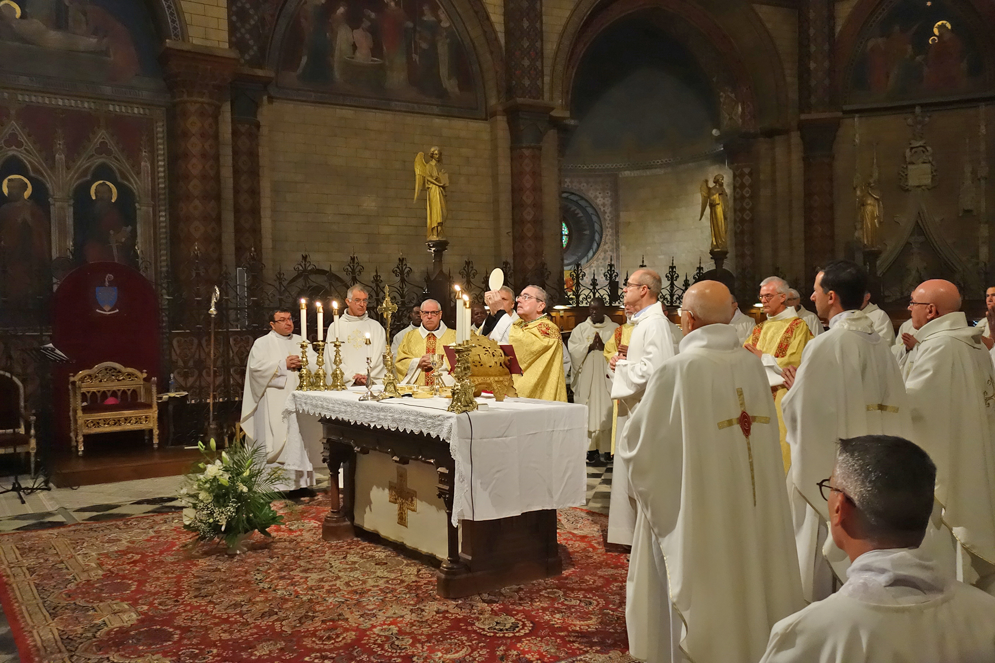 Je ne vais pas retracer les multiples événements de ces dix années écoulées —le père Denjean en a évoqué une partie en début de célébration : merci beaucoup ! Ces années, comme il l’a suggéré, ont été un mélange de joies et de peines puisque, selon le mot de saint Augustin, le pèlerinage de l’Église avance entre les vicissitudes de ce monde et les consolations de Dieu. Je demande pardon pour mes insuffisances, à ceux que j’ai déçus ou blessés par certaines décisions. Notre ministère est trop grand pour nous, justement pour que l’on voie bien que c’est Dieu qui agit. C’est pourquoi je voudrais vous inviter tous à remercier avec moi le Seigneur pour ce qu’il nous a été donné partager au cours de ces années, à louer ensemble notre Père par son Fils et dans l’Esprit Saint, non pas d’abord pour nos relatifs succès humains, mais pour son amour qui ne cesse de se répandre et se faire connaître, spécialement aux tout-petits, aux humbles, à ceux qui sont éprouvés —dont nous faisons tous partie, à certains moments au moins.