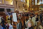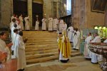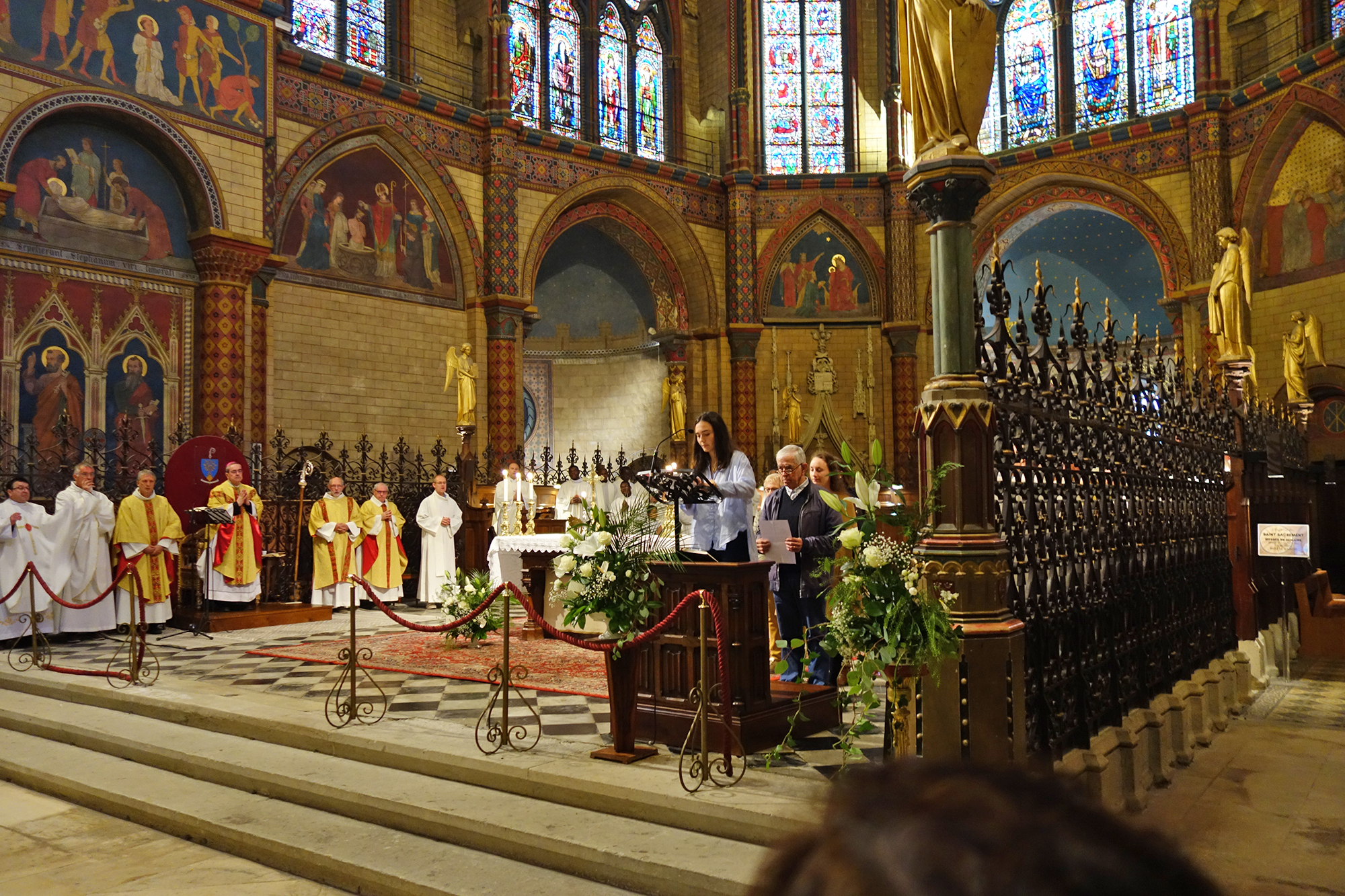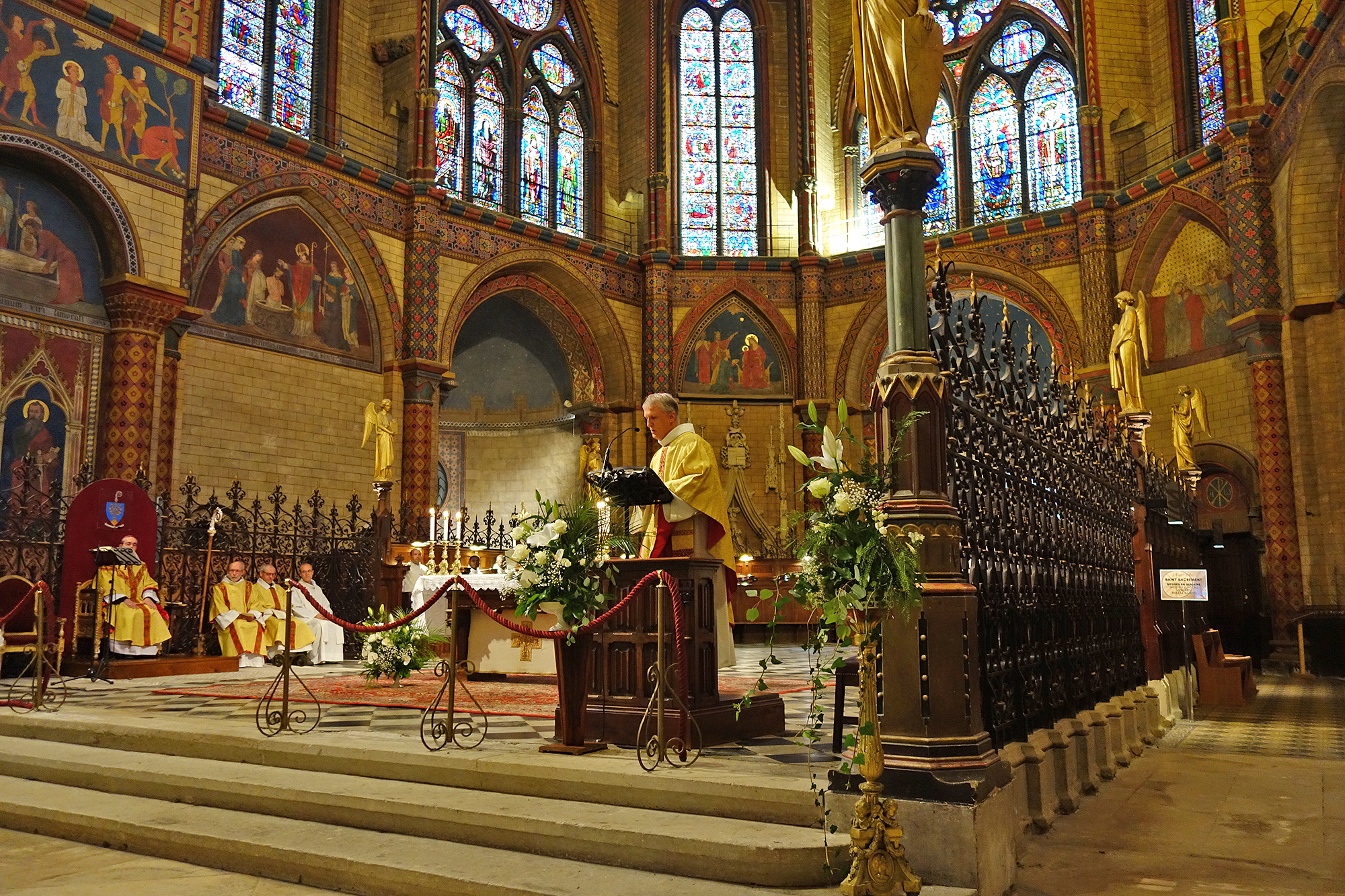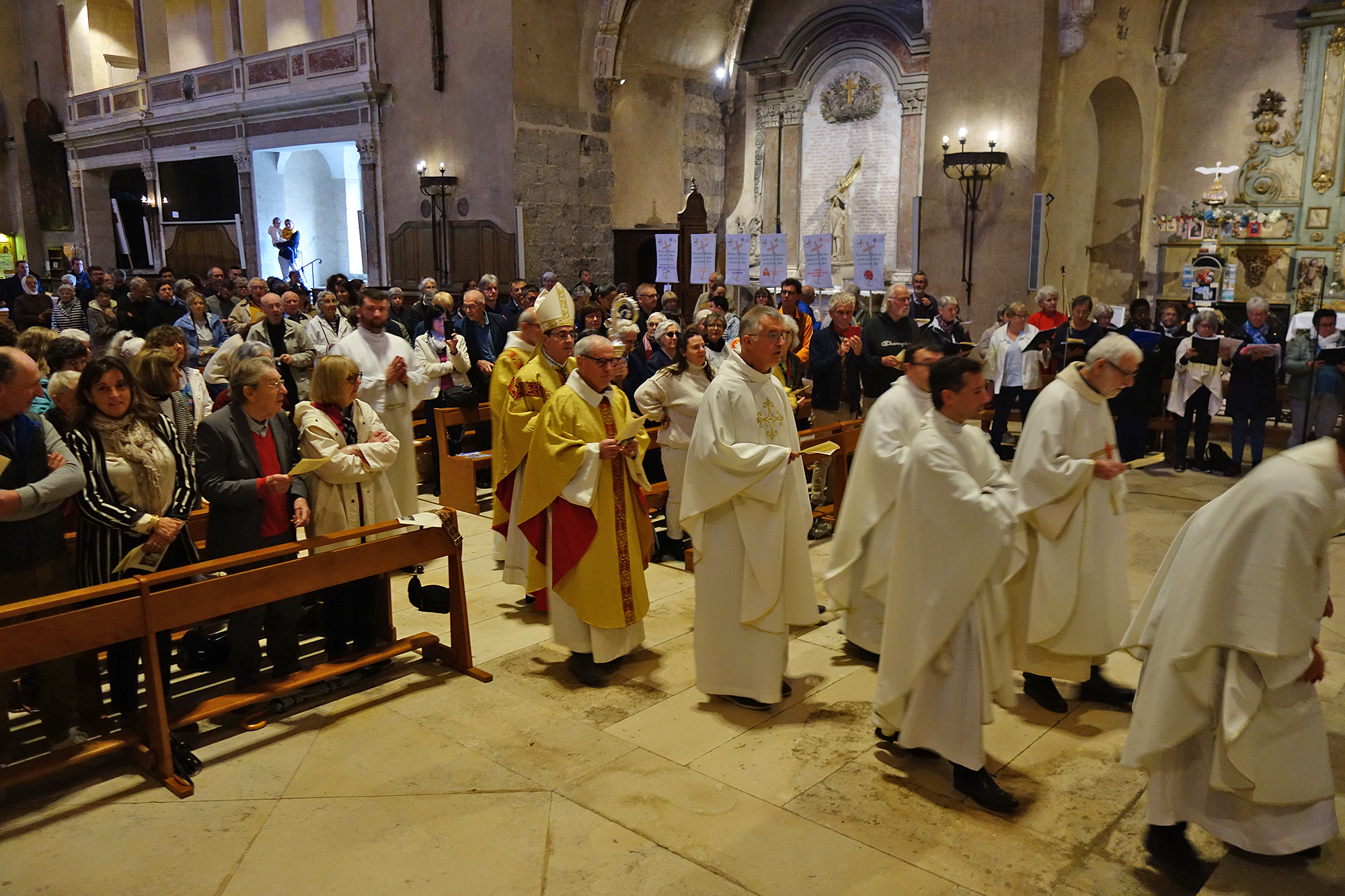 Je ne vais pas retracer les multiples événements de ces dix années écoulées —le père Denjean en a évoqué une partie en début de célébration : merci beaucoup ! Ces années, comme il l’a suggéré, ont été un mélange de joies et de peines puisque, selon le mot de saint Augustin, le pèlerinage de l’Église avance entre les vicissitudes de ce monde et les consolations de Dieu. Je demande pardon pour mes insuffisances, à ceux que j’ai déçus ou blessés par certaines décisions. Notre ministère est trop grand pour nous, justement pour que l’on voie bien que c’est Dieu qui agit. C’est pourquoi je voudrais vous inviter tous à remercier avec moi le Seigneur pour ce qu’il nous a été donné partager au cours de ces années, à louer ensemble notre Père par son Fils et dans l’Esprit Saint, non pas d’abord pour nos relatifs succès humains, mais pour son amour qui ne cesse de se répandre et se faire connaître, spécialement aux tout-petits, aux humbles, à ceux qui sont éprouvés —dont nous faisons tous partie, à certains moments au moins.
