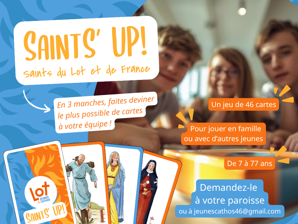 Depuis des mois, dans la plus grande discrétion, le Service des Vocations travaille pour vous offrir un magnifique cadeau : le jeu de société SaintS’ UP ! Une autrice, une dessinatrice, des relecteurs : c’est toute une équipe qui est fière de vous dévoiler aujourd’hui le résultat.