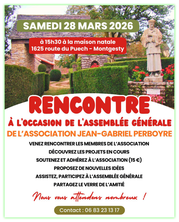 A l’occasion de l’assemblée générale, venez rencontrer les membres de l’association Jean-Gabriel Perboyre :